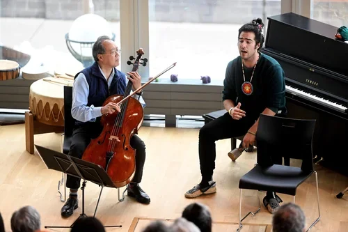 As part of the celebratory launch event, the TSO and CAMH hosted Yo-Yo Ma and Jeremy Dutcher, who created a community space for conversations about culture’s ability to heal, and performed along with members of the Orchestra, Métis mezzo-soprano Rebecca Cuddy, and Mi’kmaq dancer and choreographer from Eskasoni First Nation Sarah Prosper.